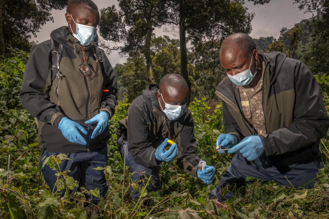 Each day, rangers enter the park to remove snares and check for other signs of habitat disturbance. Rangers also play a critical role in monitoring the health of gorillas in habituated groups. Habituation has also allowed for mountain gorilla tourism: groups can be observed, from a safe distance, by tourists, guides, and storytellers, including photographer Jasper Doest.