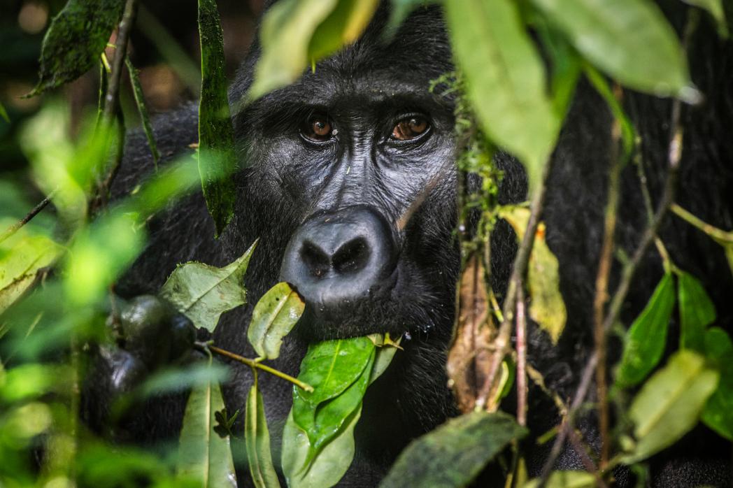 Like other forest ecosystems around the world, mountain gorilla habitat serves as a refuge for other species to thrive against a backdrop of habitat degradation. In Bwindi, the mountain gorillas’ dense forest habitat is richly biodiverse, home to many other globally threatened species including chimpanzees and African forest elephants.